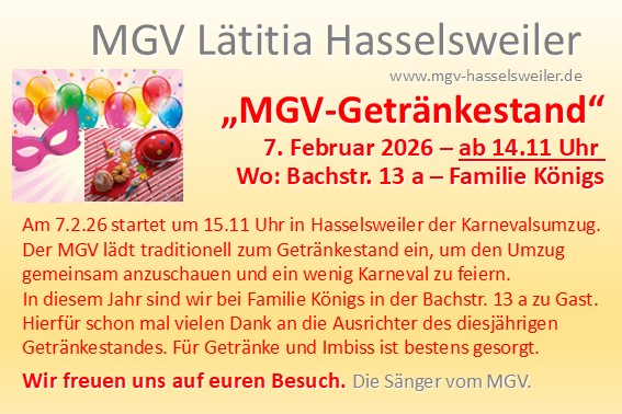 7.2.2026       14.00 Uhr MGV-Getränkestand Karnevalsumzug Hasselsweiler