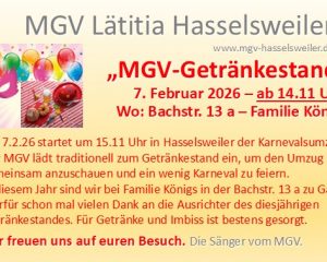7.2.2026       14.00 Uhr MGV-Getränkestand Karnevalsumzug Hasselsweiler