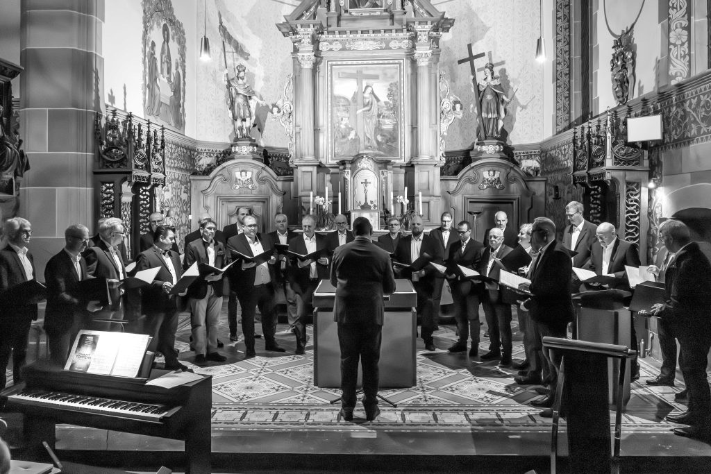 Freude am Singen heißt es schon seit 145 Jahren in Hasselsweiler, so begrüßte der 1. Vorsitzende Max Lieven die Besucherinnen und Besucher in der voll besetzten Kirche in Hasselsweiler. Die 28 Sänger des MGV Hasselsweiler mit Chorleiter Christian Werres hatten zu einem Blick ins Repertoire des Männerchores eingeladen. Zum Start erklang die neu restaurierte Orgel zu Lobt den Herrn der Welt gemeinsam mit dem MGV. Danach nahm der Männerchor das Publikum mit auf eine musikalische Reise: von klassischen Männerchorlieder, wie das Morgenrot, über Liebeslieder bis hin zu modernen Arrangements wie Die Legende von Babylon und Perfect von Ed Sheran. Tomasz Wiezcorek zeigte sein Können mit einem imposanten, aber doch sehr einfühlsamen, eigenem Orgelstück. Die 145-jährige Vereinsgeschichte hatte Josef Lieven in einem umfassenden und sehr treffenden Gedicht in Reimform auf den Punkt gebracht. Sowohl was den Chor ausmacht als auch das, was der Chor im Laufe eines Jahres veranstaltet, wurde treffend formuliert. Mit Bella Napoli, Stammbaum und Em Veedel setzte der Männerchor einen tollen Schlusspunkt eines gelungenen Konzertes. Mit kräftigem Applaus und Standing Ovations wurde die gesanglich gute Leistung des MGV von den Besucherinnen und Besuchern honoriert. Das Konzert war der Auftakt von insgesamt vier Jubiläumsveranstaltungen des MGV in diesem Jahr. Die nächsten Veranstaltungen finden am 30.4. mit der Open-Air-Maifete sowie am 2. Mai mit einem großen Chor- und Jubiläumstag mit befreundeten Chören, dem Instrumentalverein Herbach sowie Christa Dohmen und Ralf Esser statt. Für musikalische Unterhaltung wird am 2. Mai bestens gesorgt sein.